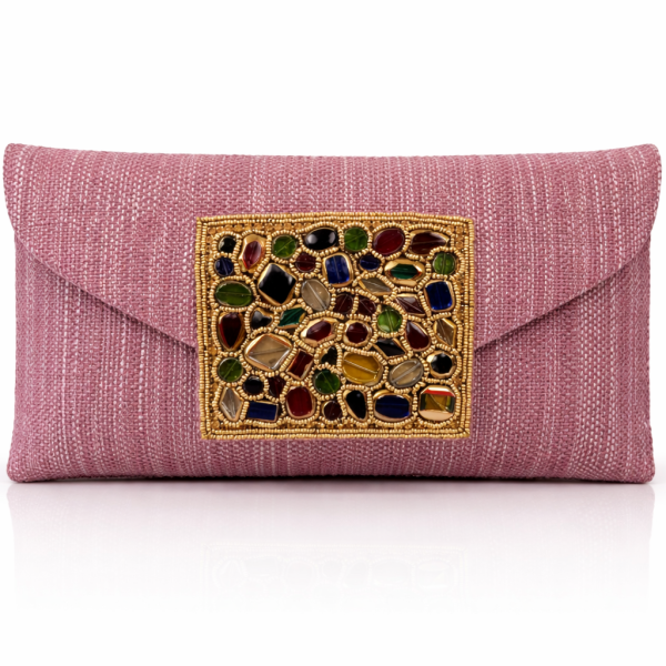 Bolso de fiesta artesanal malva rosado con piedras naturales