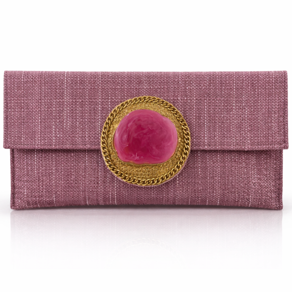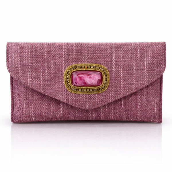 Bolso de fiesta artesanal malva rosado con piedra natural