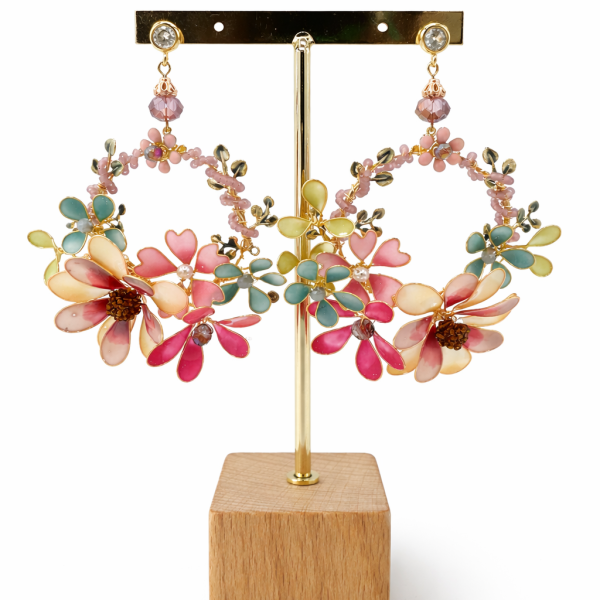 Pendientes artesanales de flores esmaltadas